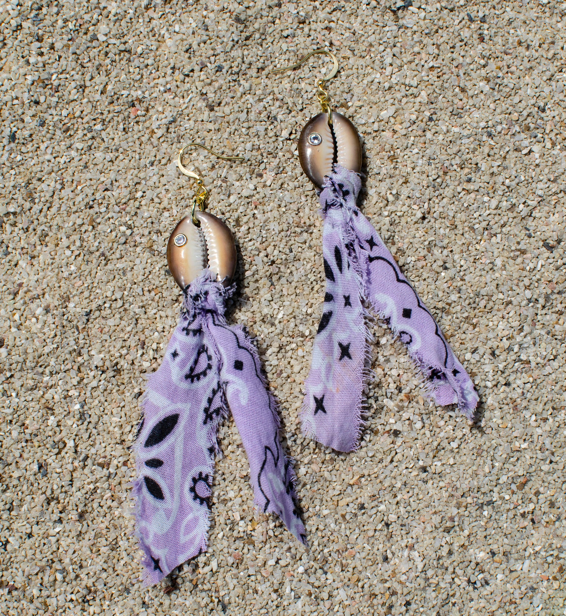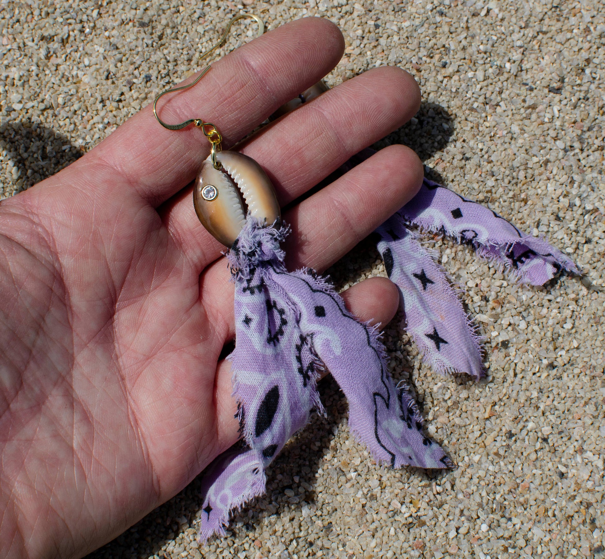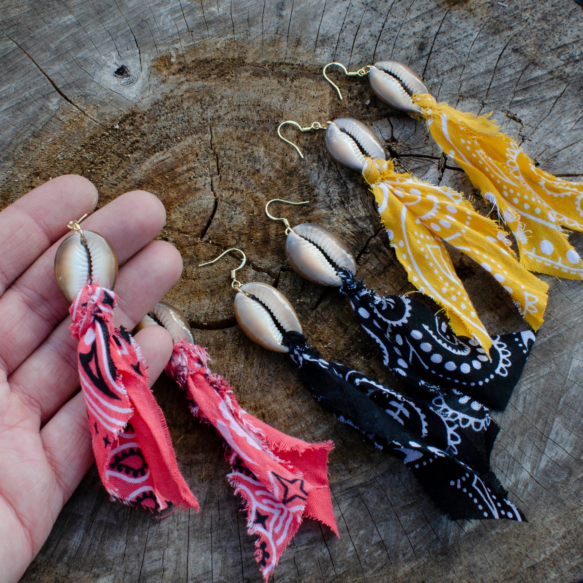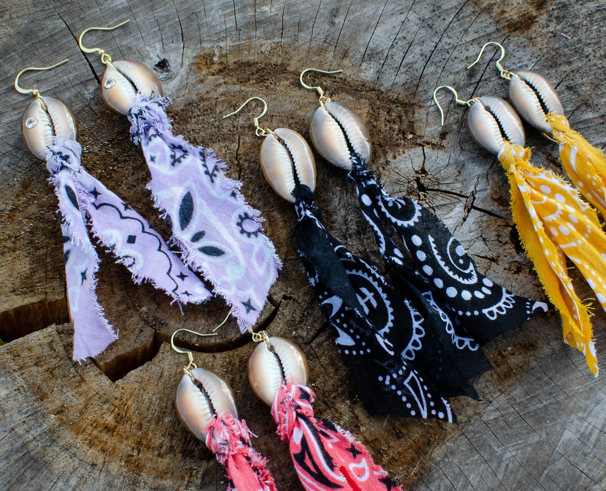 Cowrie Shell & Frayed Bandana Earrings – Under $100
