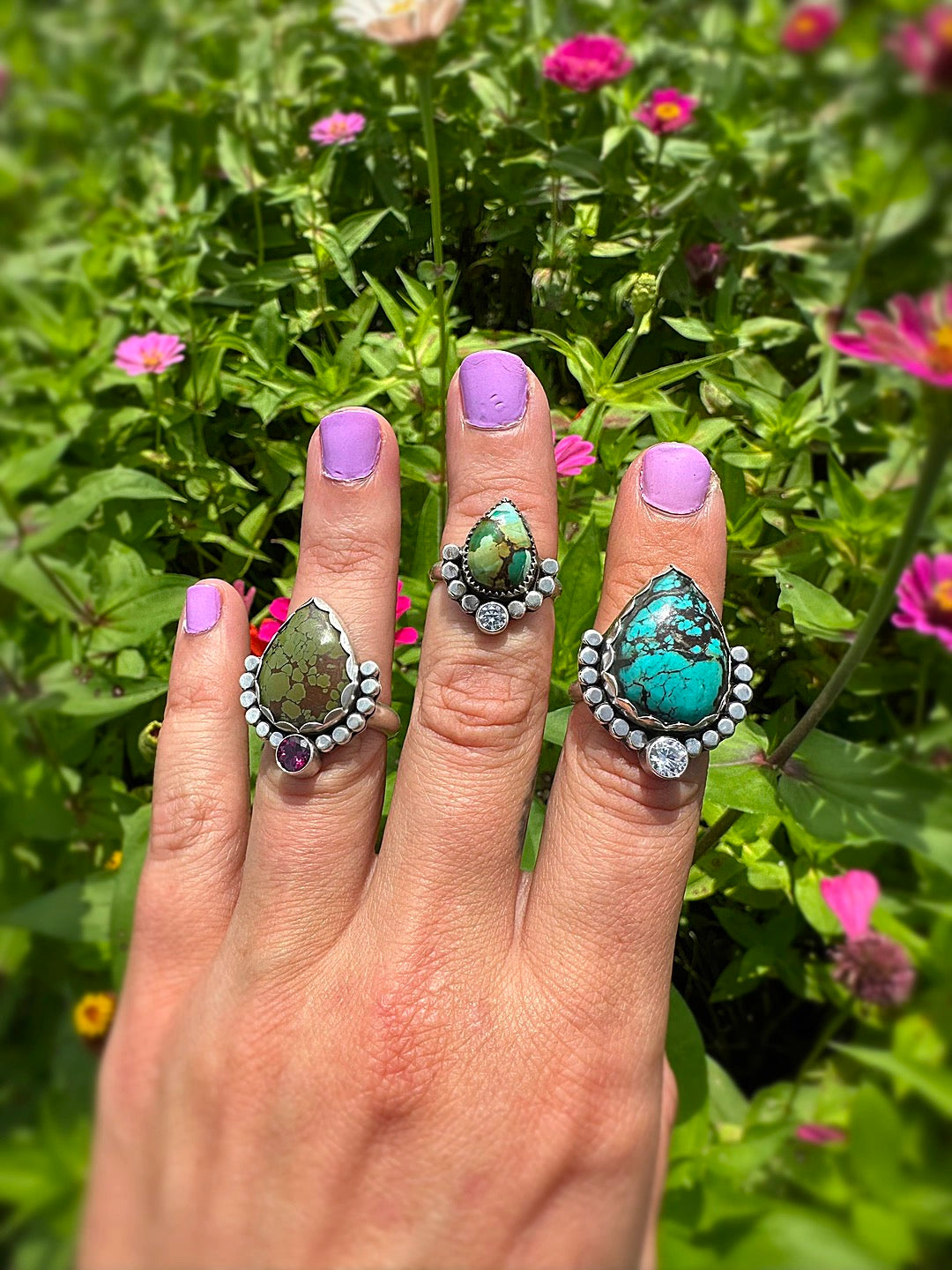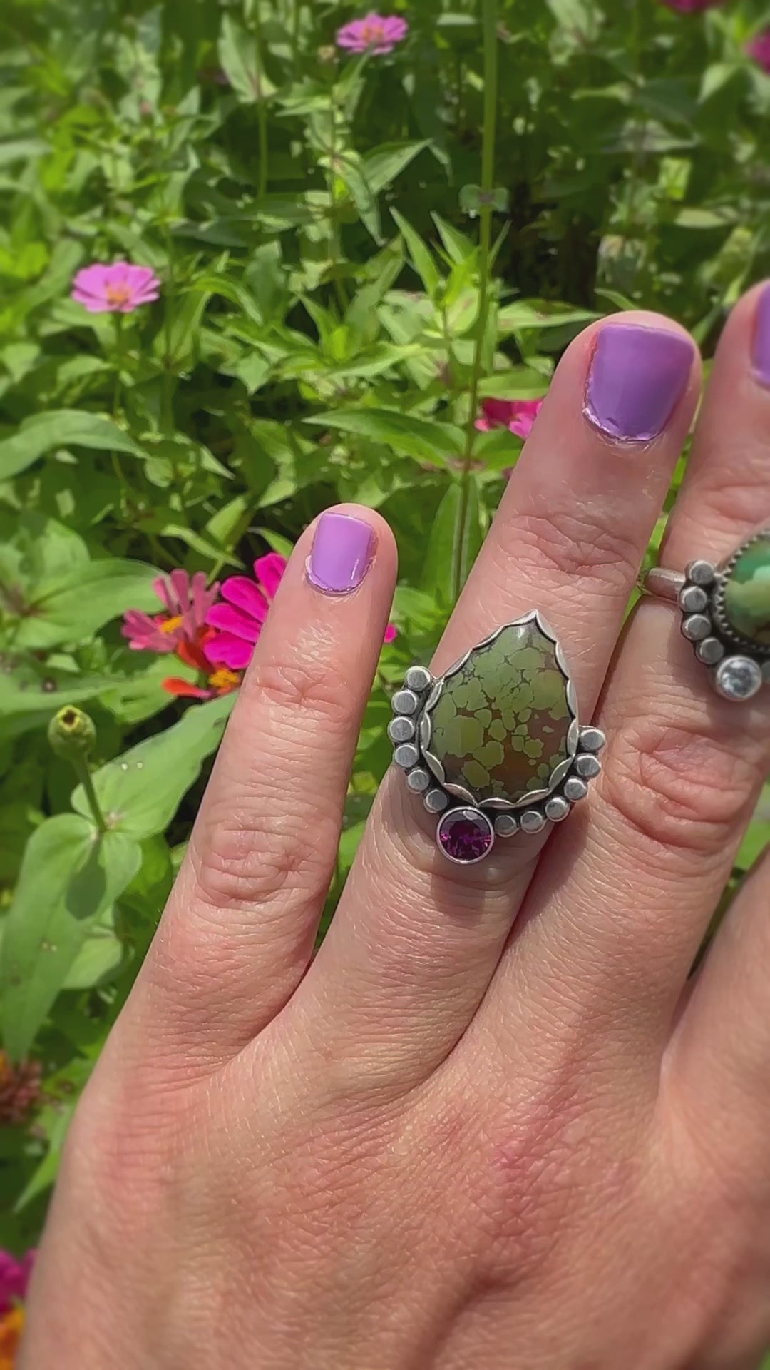 Green Turquoise and Natural Garnet- Size 6