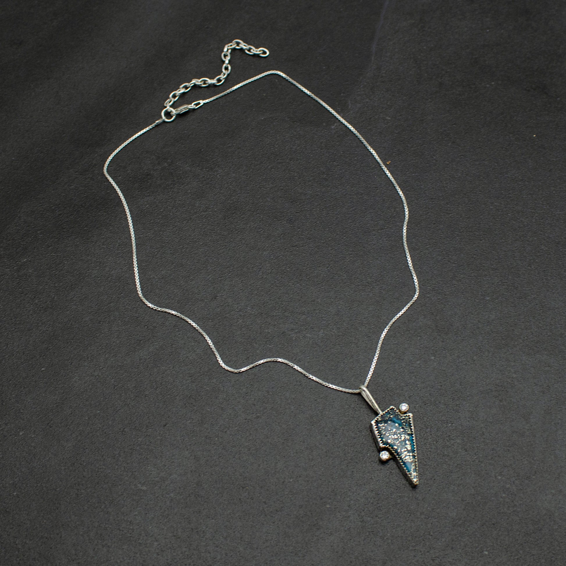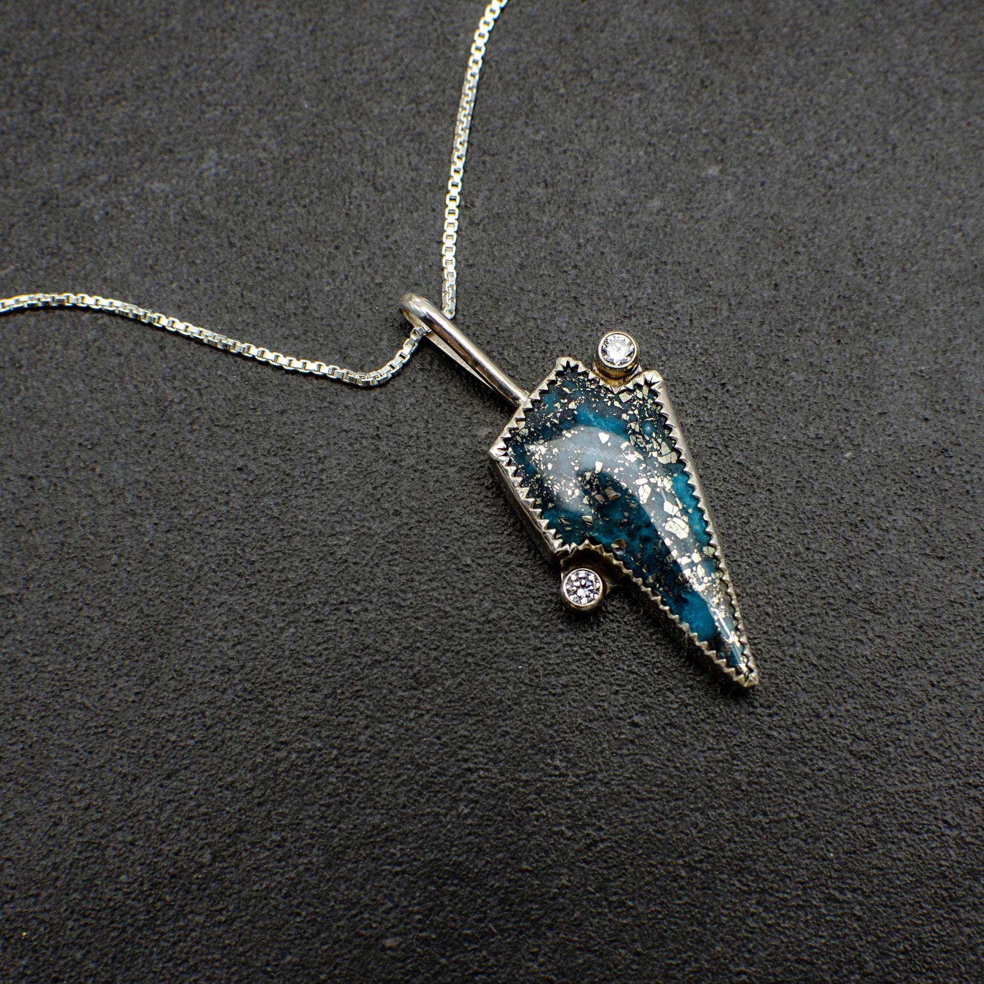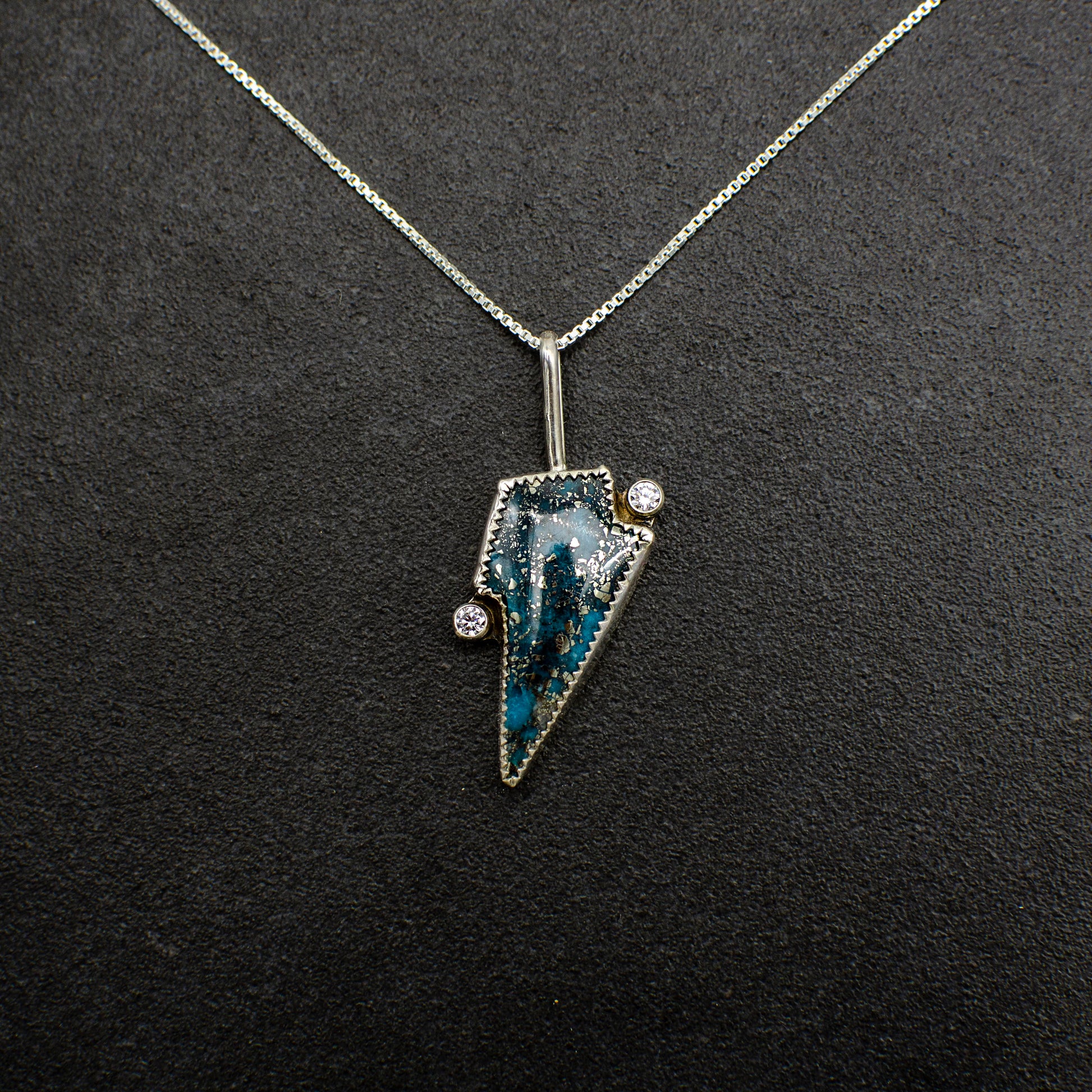 -Featuring a turquoise bolt set in serrated sterling silver bezel wire.