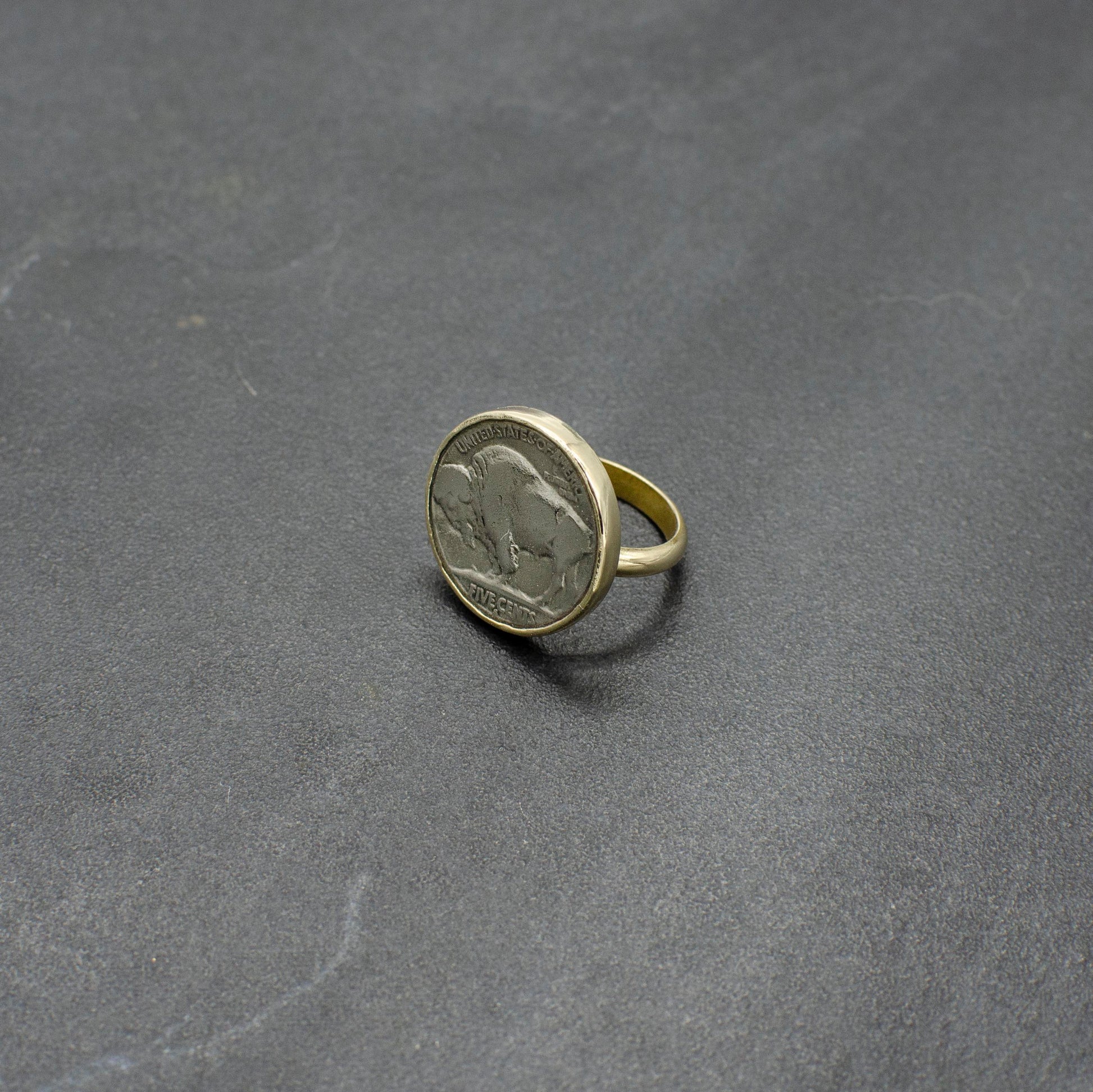 A buffalo coin ring inlaid with a cz. Want a specific year? Contact us through our custom order page.