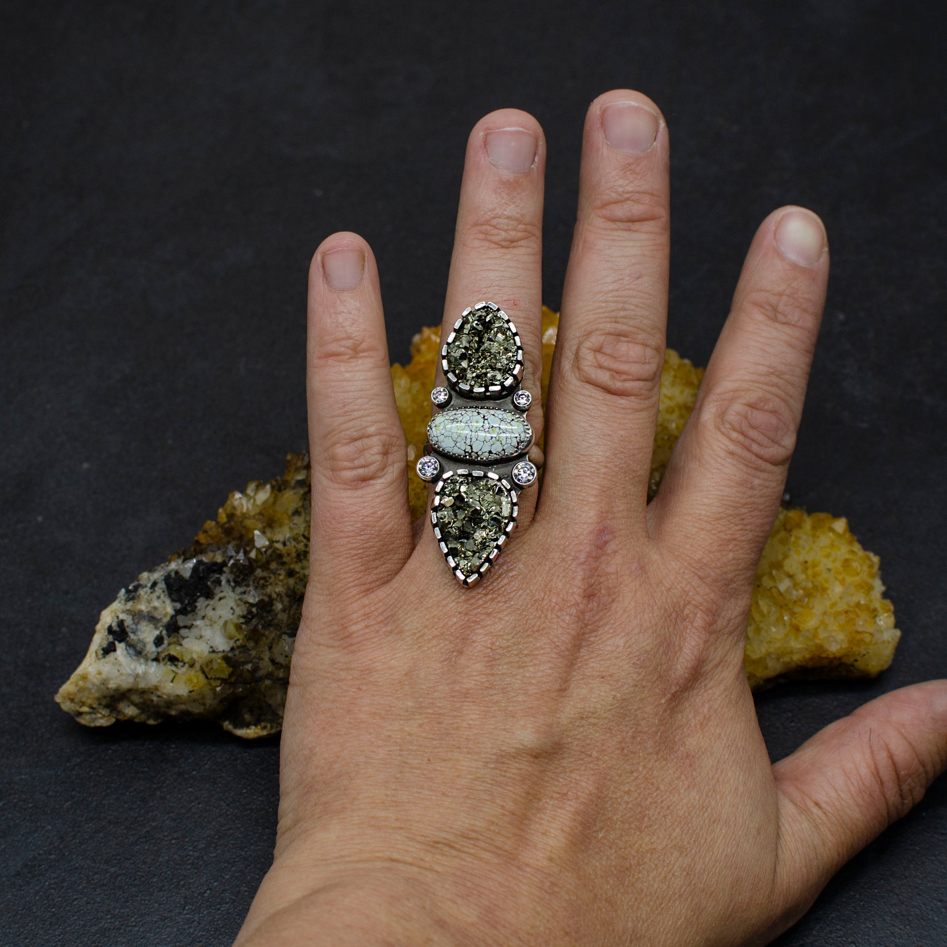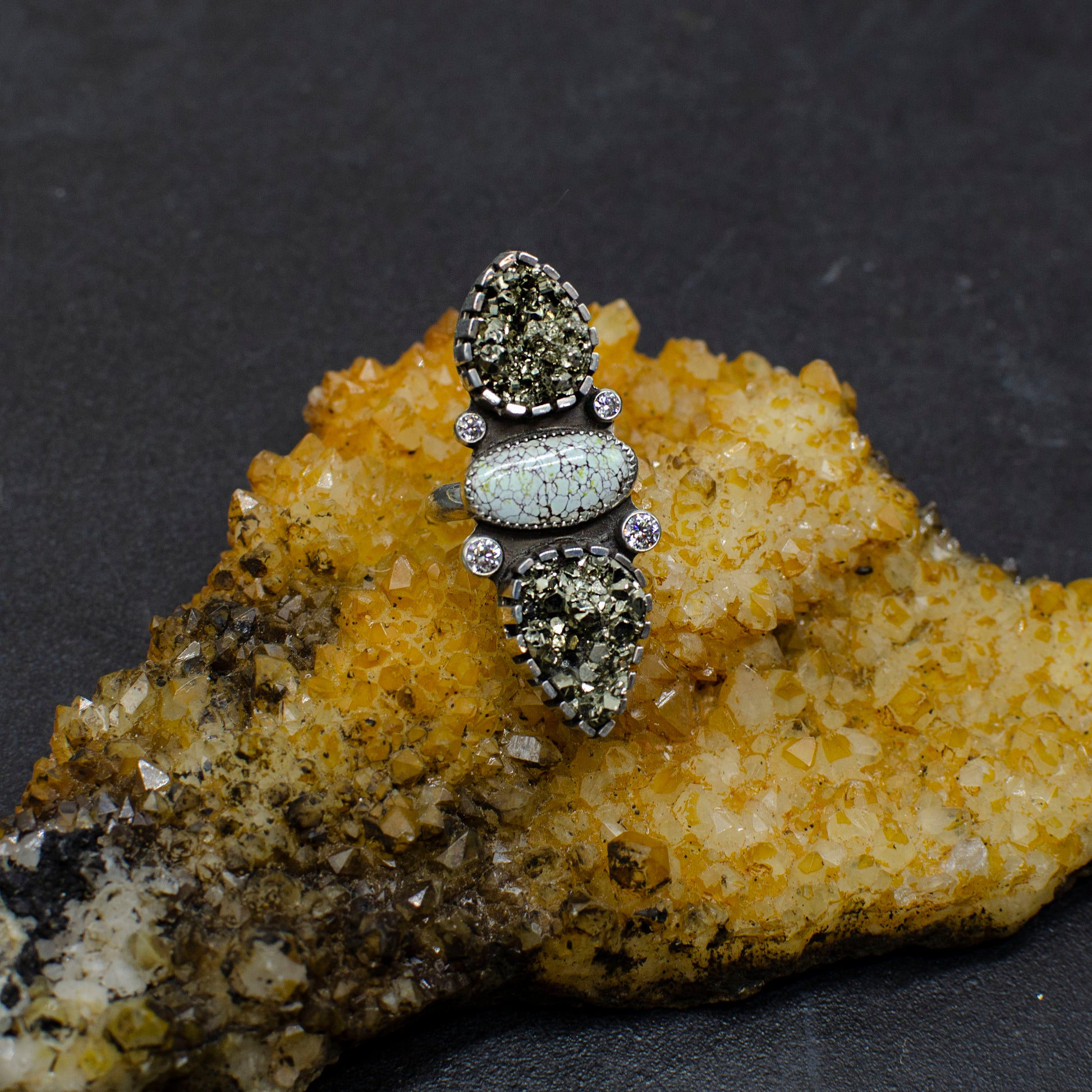 Peruvian Pyrite and Sand Hill Turquoise multi stone ring set in sterling silver.