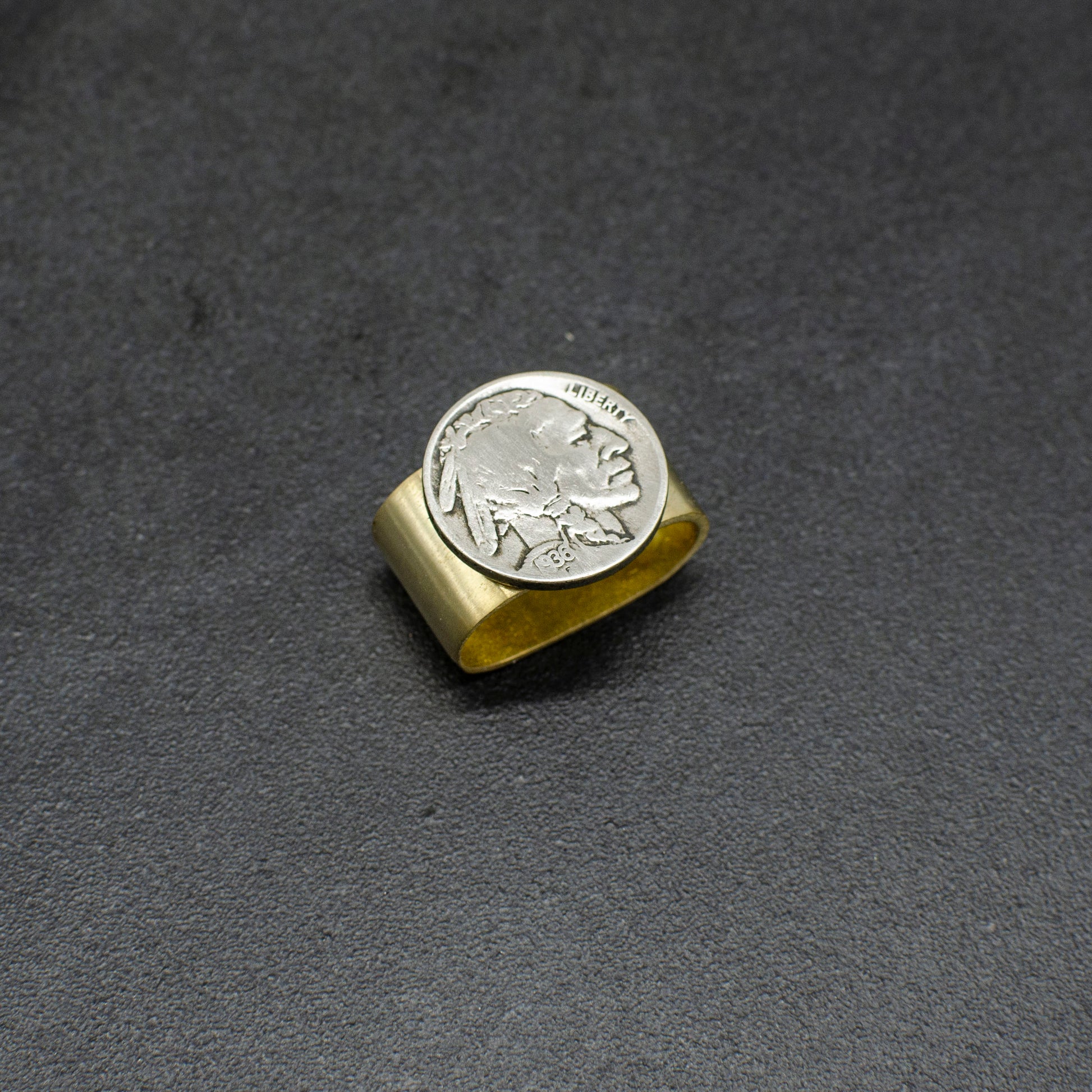 -Handmade in brass with Authentic Native American Buffalo Coin.