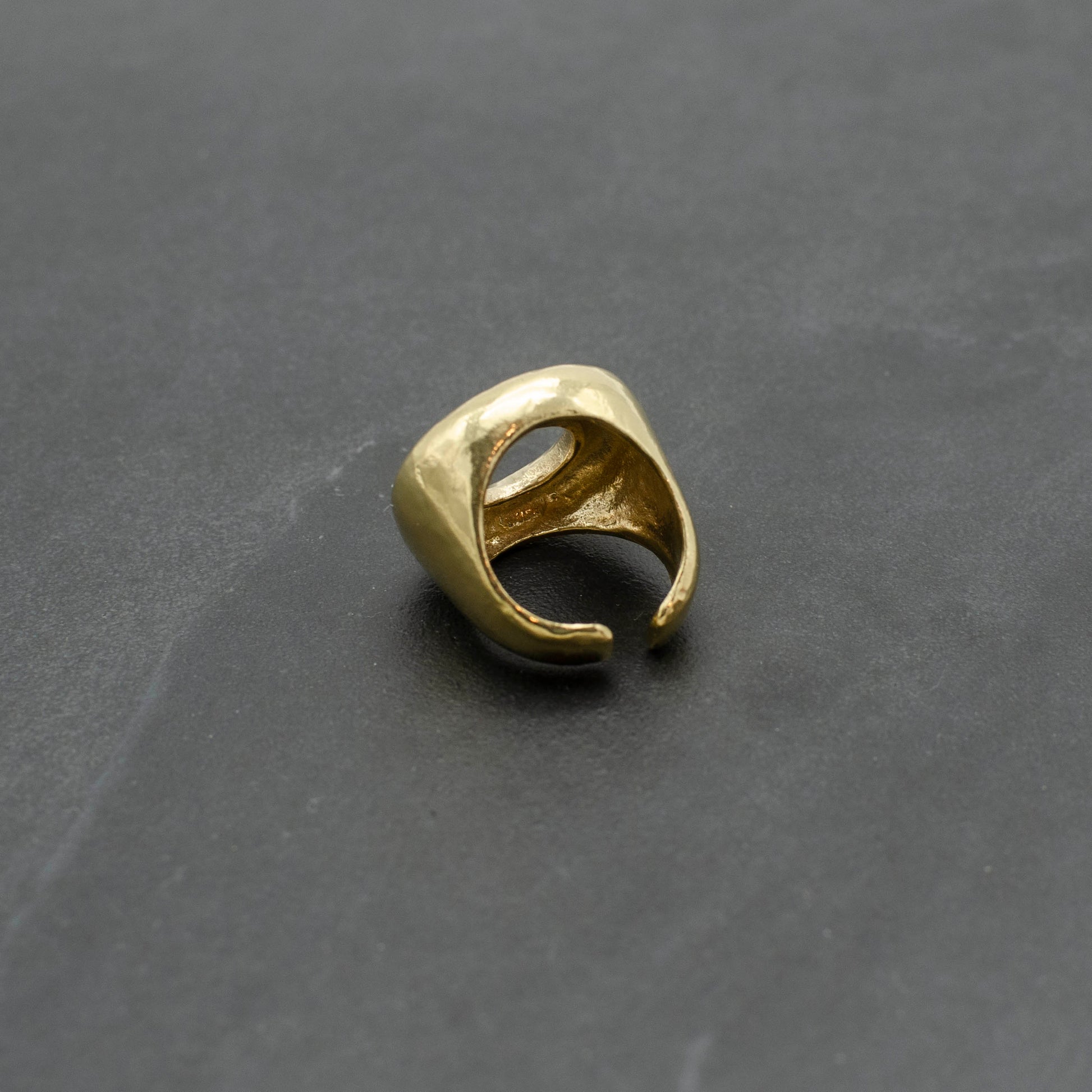 Rounded brass ring with thick 14k gold plating, adjustable sizing.