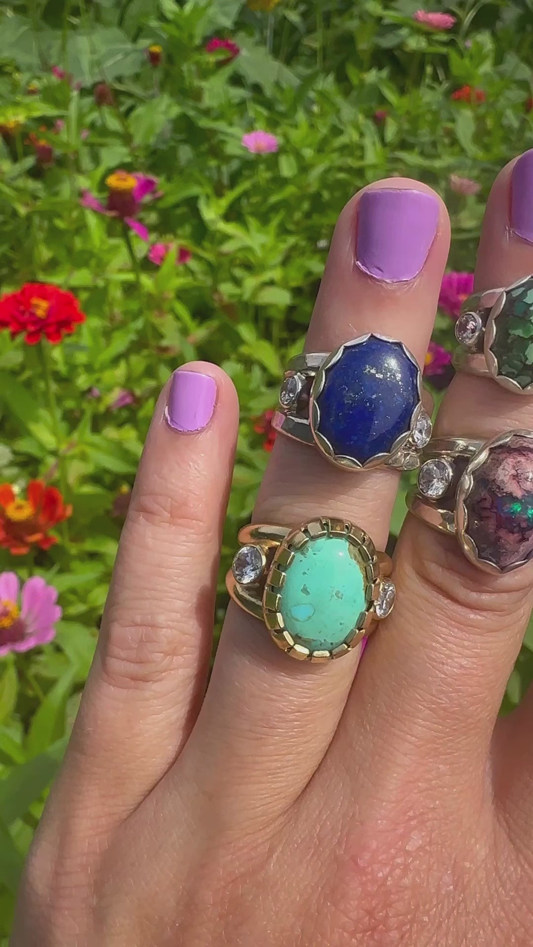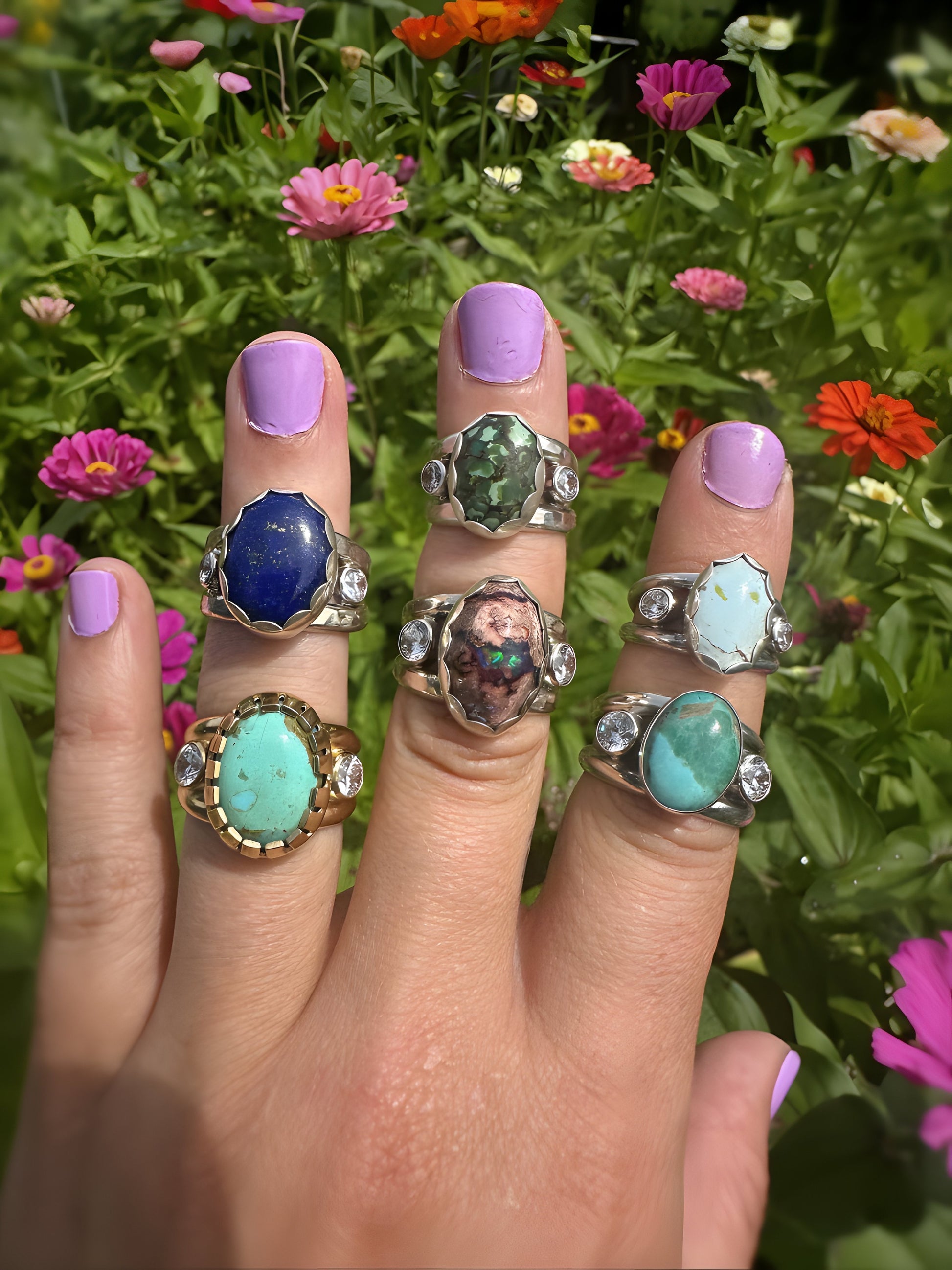 • Stone Options: Choose from a variety of exquisite stones including lapis, turquoise, green turquoise, sand hill turquoise, Tibetan turquoise, or cantera opal. Each stone varies in size, ensuring a perfect fit for every preference.