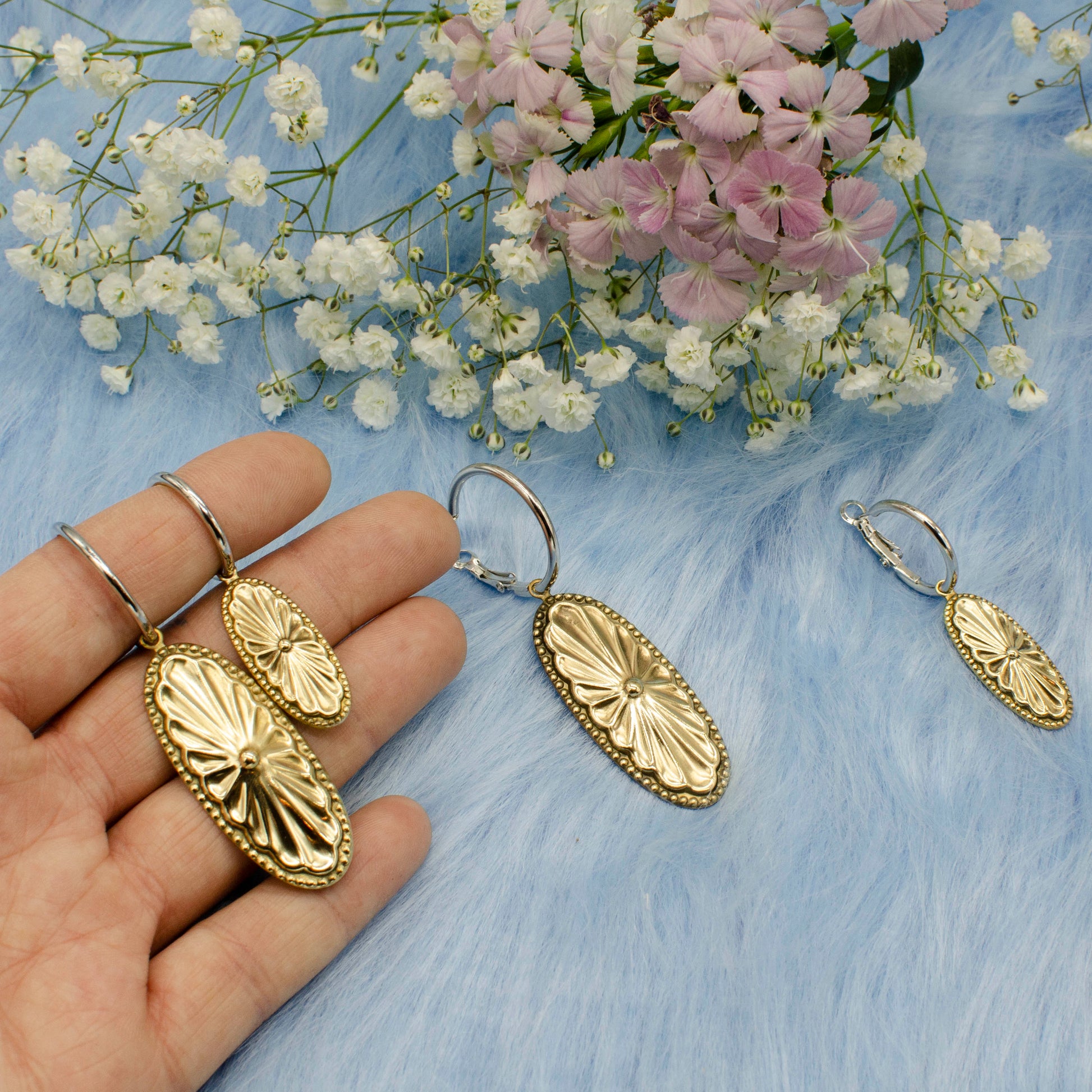 Your favorite Small Brass Concho Drops now have a bigger sibling! Available in both small and large sizes, these polished brass conchos dangle from silver-plated, lightweight hoops, bringing Southwest charm to any look. Whether you prefer a delicate touch or a bolder statement, both styles are perfect for everyday wear and versatile enough to complement both gold and silver jewelry.