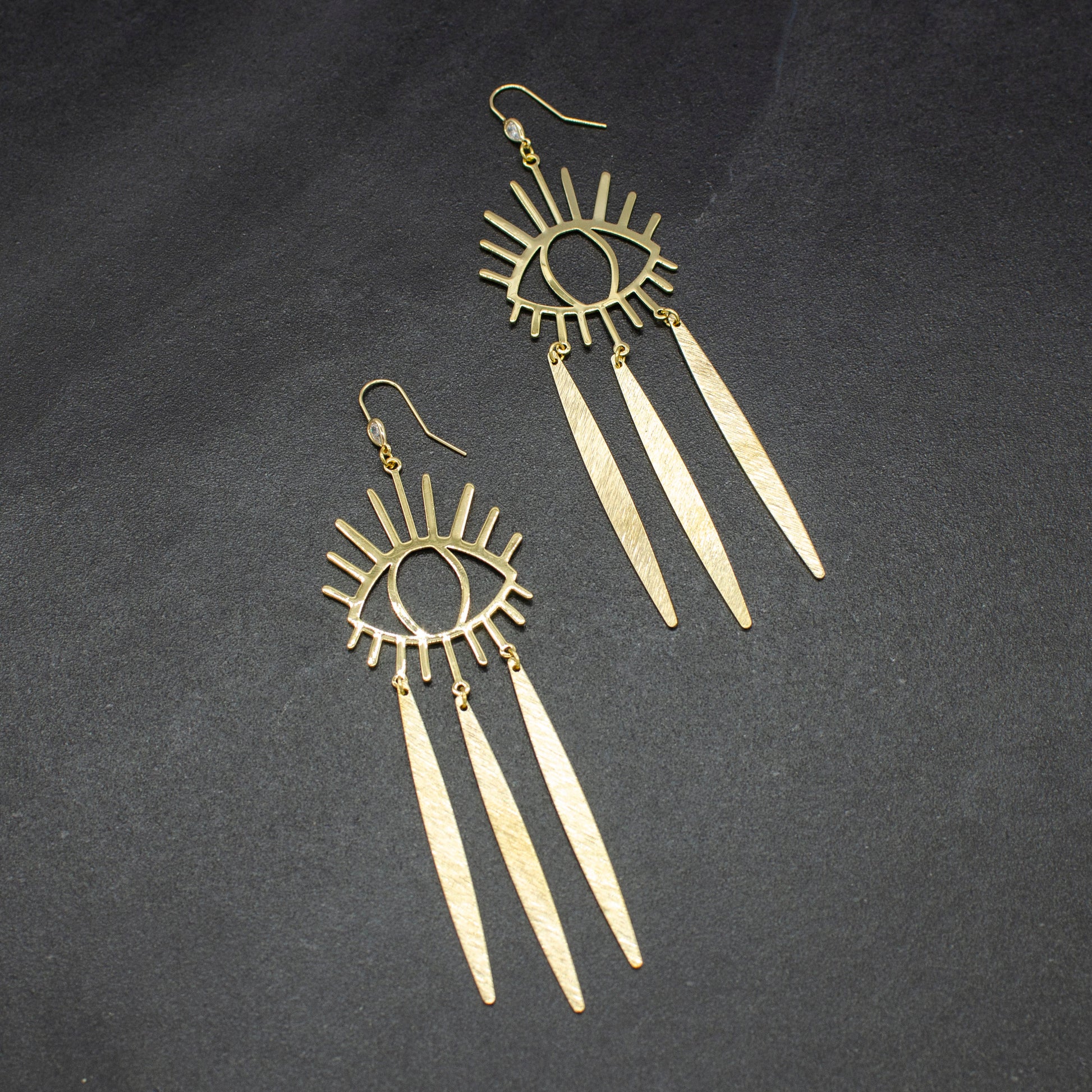 14k gold plated elongated eye earrings.