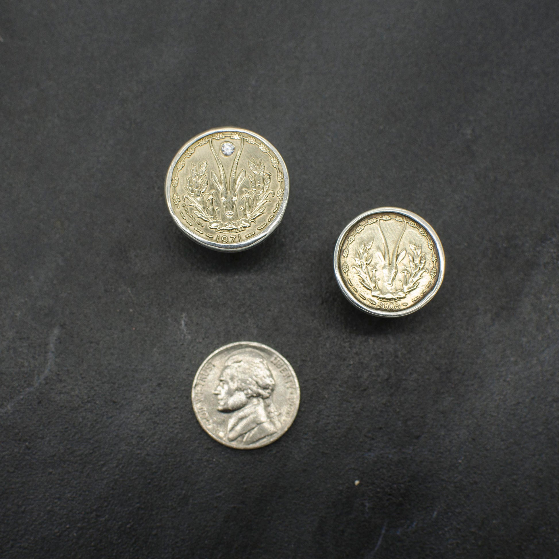 An authentic West African Gazelle coin in sterling silver. Choose to add a bit of sparkle with an inlaid sparkling cubic zirconia.