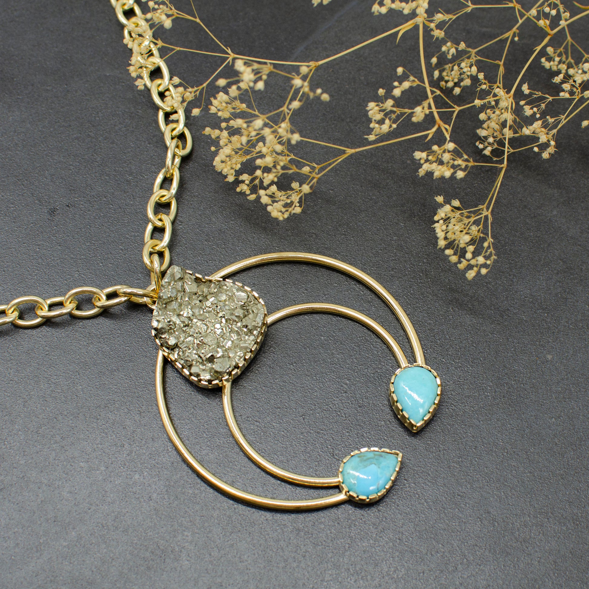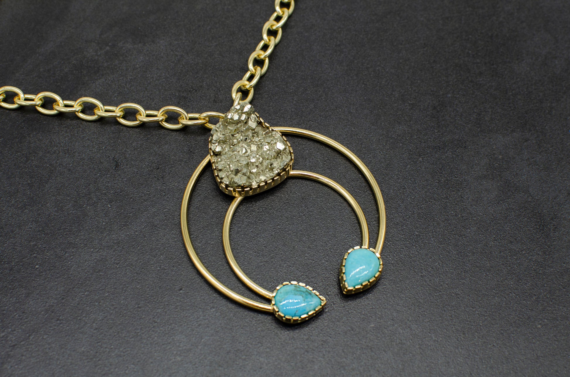 W-Gold Pyrite & Turquoise Cosmic Squash Blossom