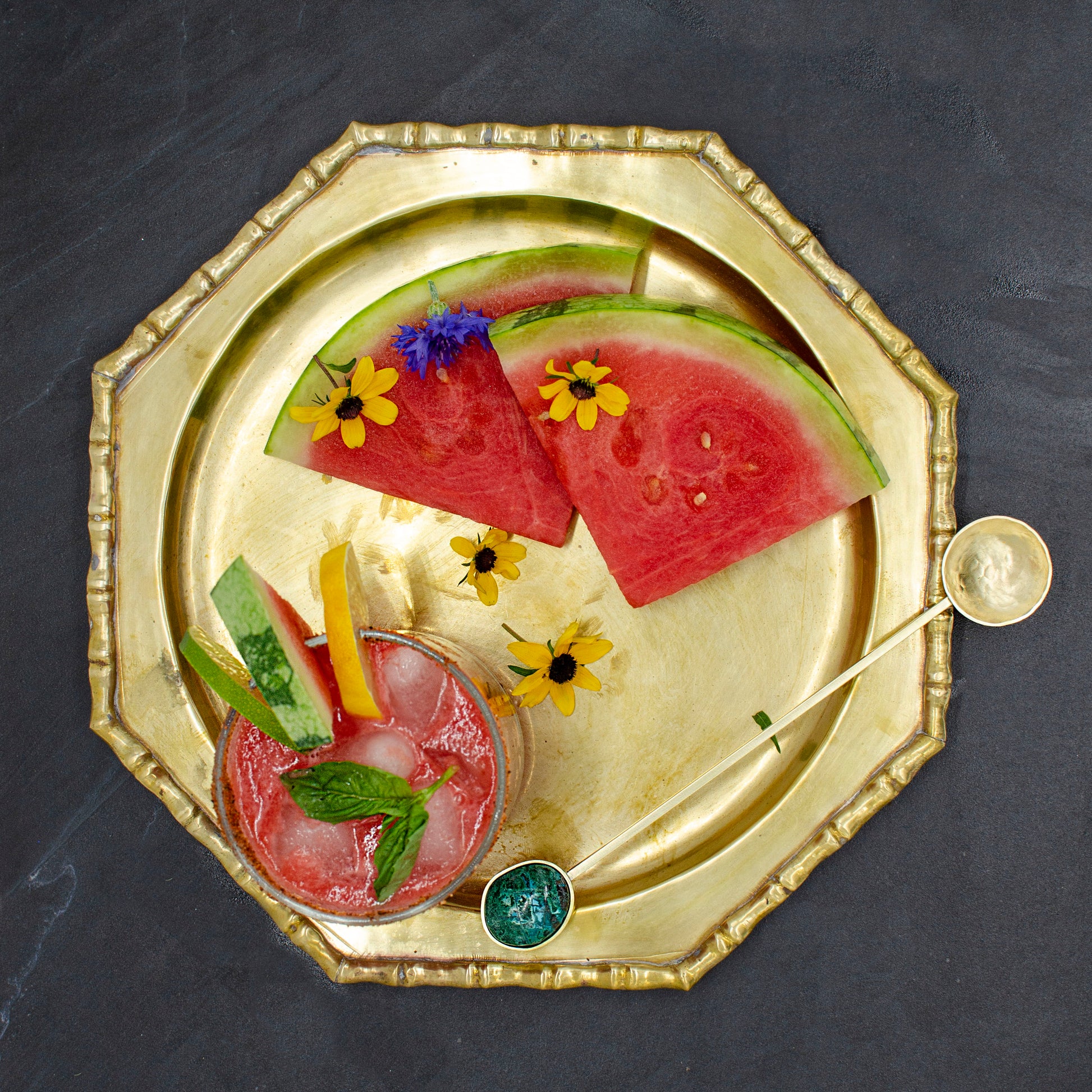 Handmade brass Malachite cocktail/mixing spoon. This spoon measures either a tablespoon(large 10") or teaspoon(small 8") and makes the perfect gift. Made to order, please allow 2-3 days fro production.