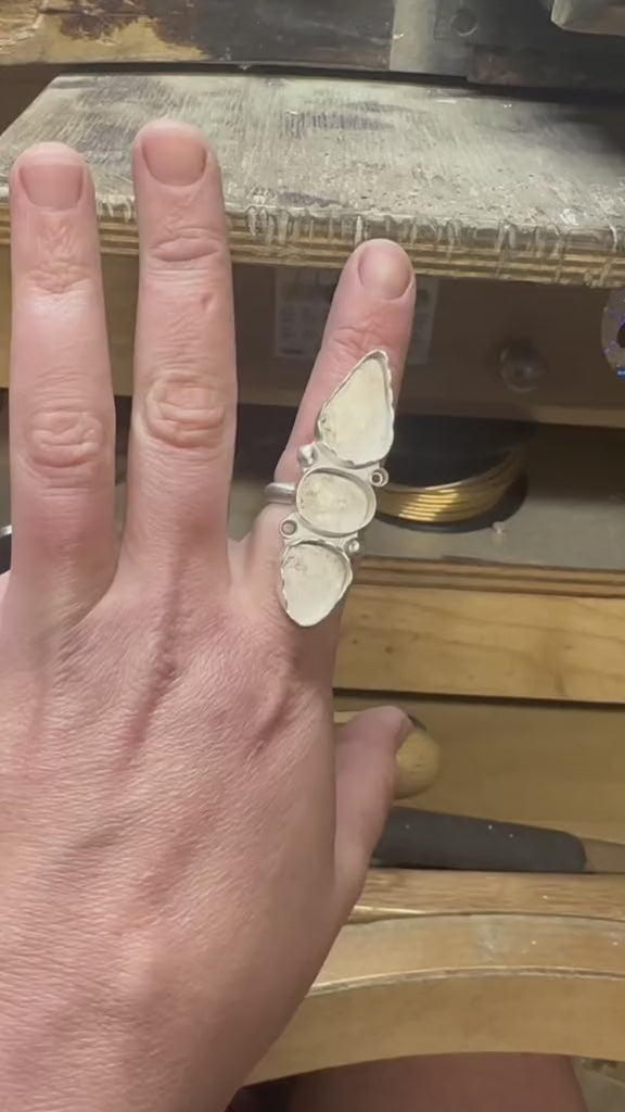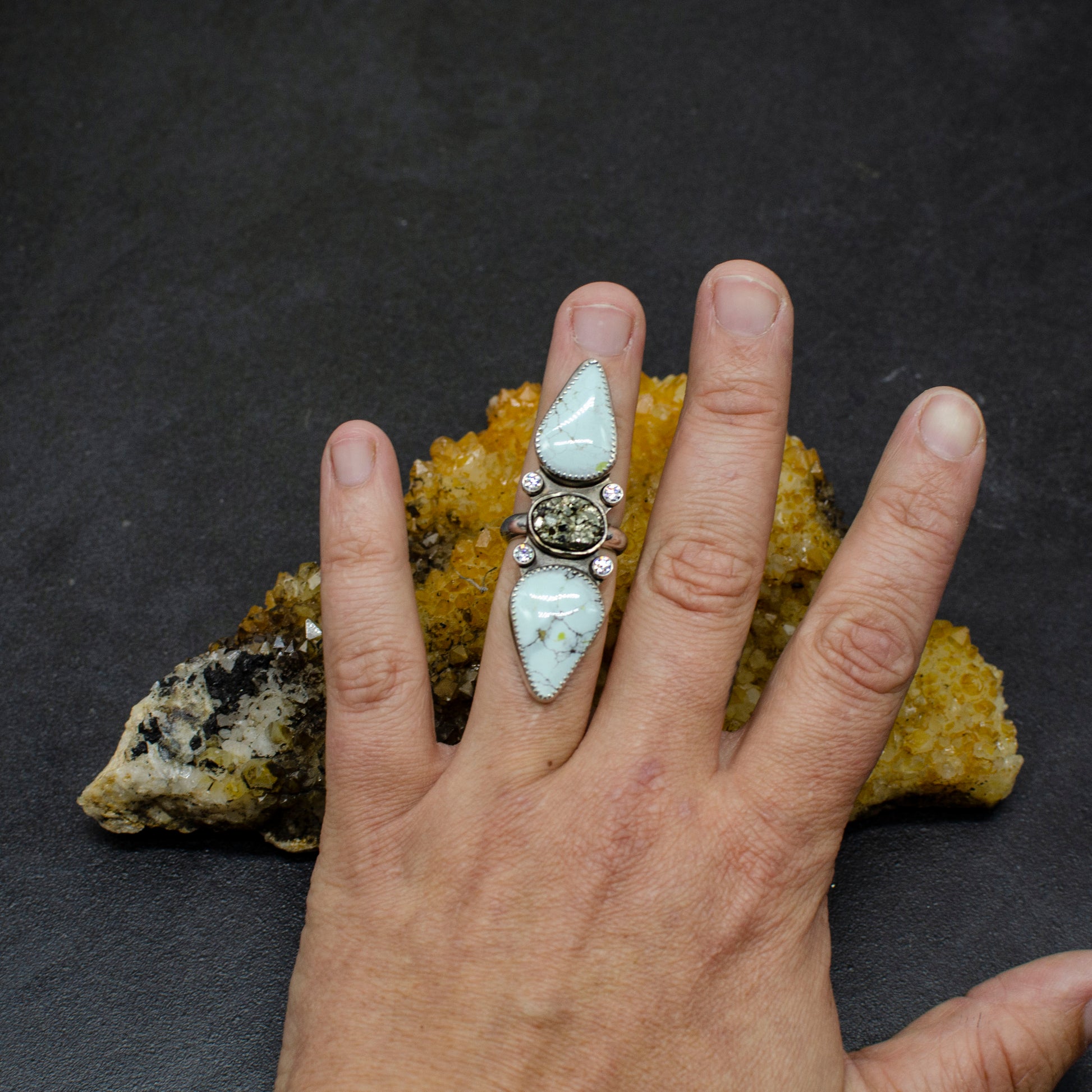 Peruvian Pyrite and Sand Hill Turquoise multi stone ring set in sterling silver.
