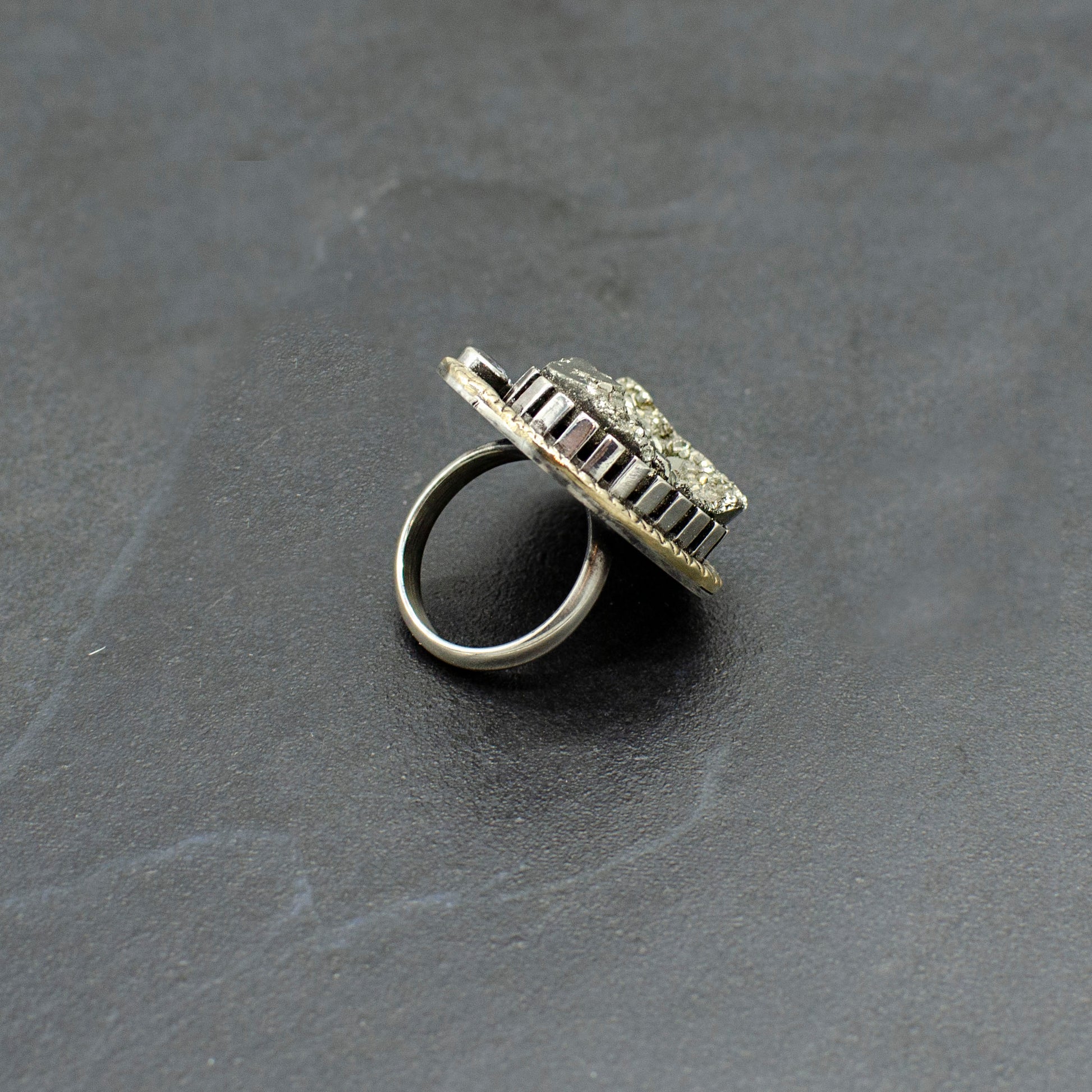 -Peruvian Pyrite cabochon set in a sterling silver decorative bezel.