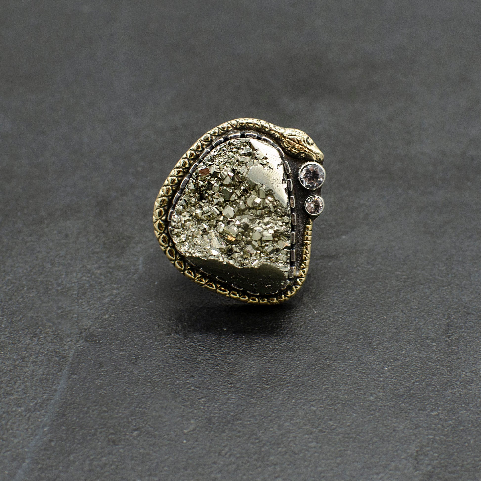 Handmade Peruvian Pyrite Serpent Ring SIZE 7