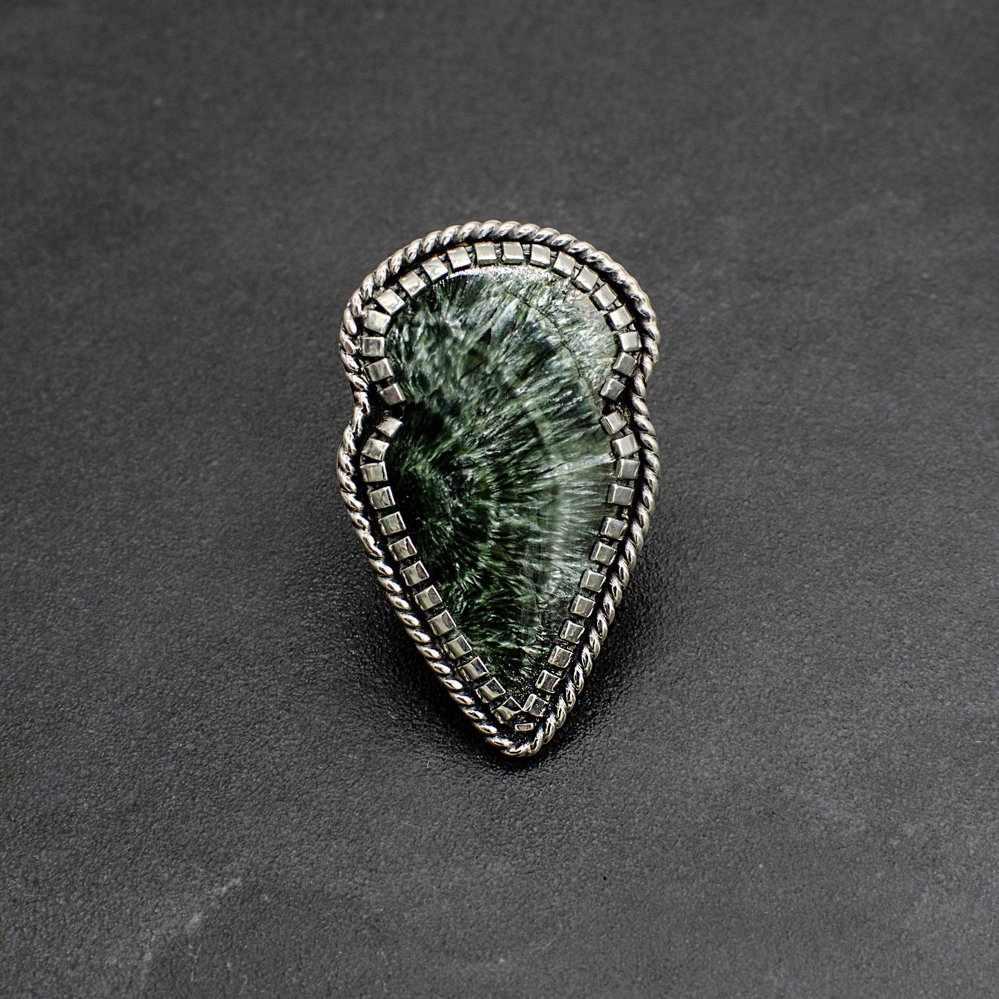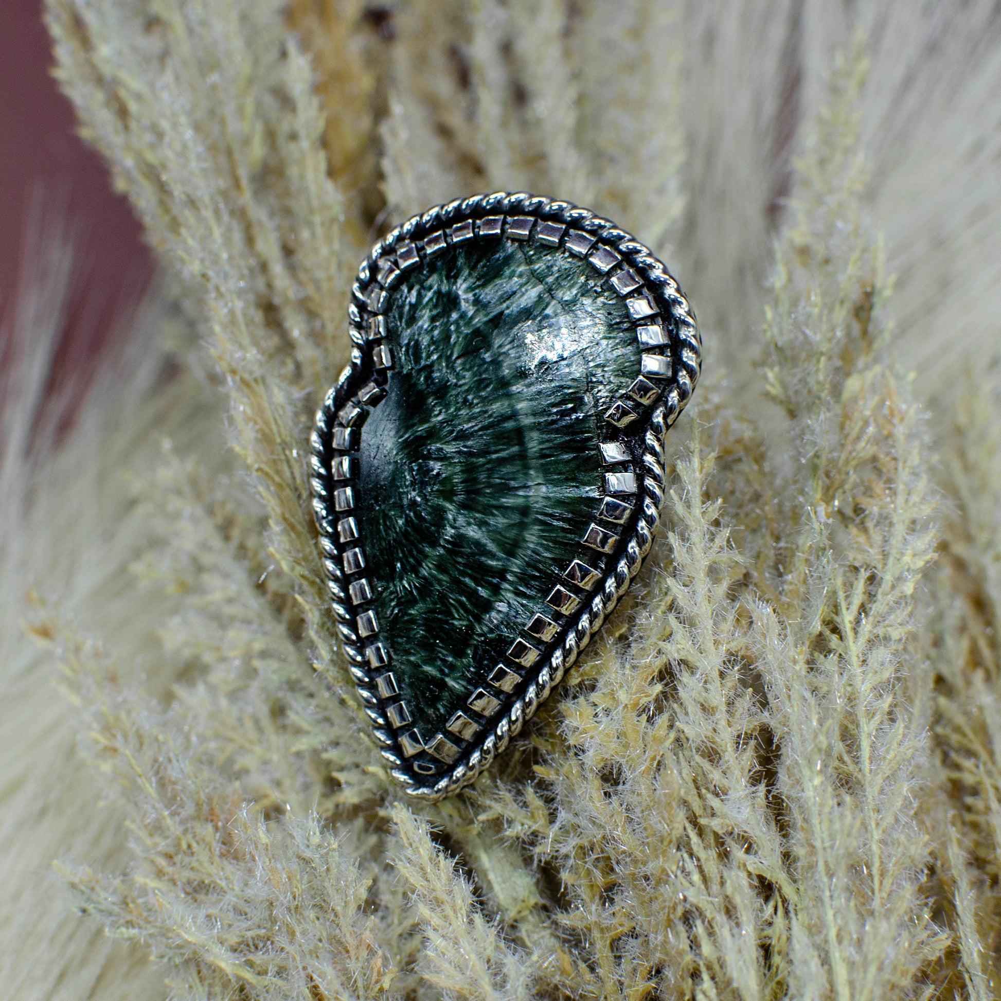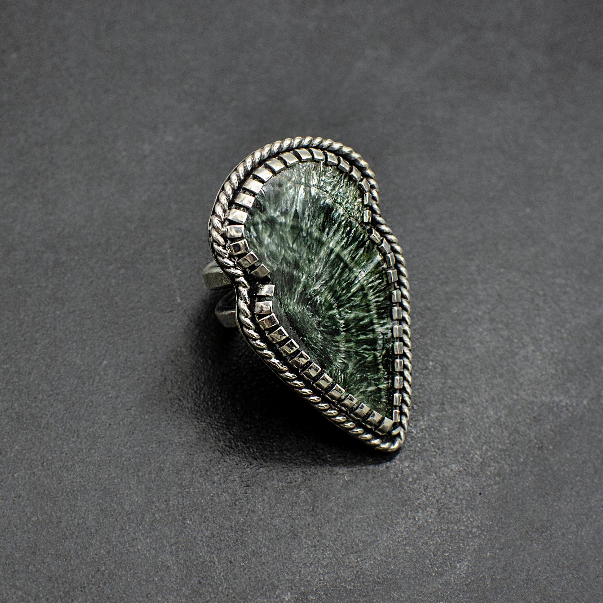 Handmade sterling silver natural Seraphinite Arrowhead Ring
