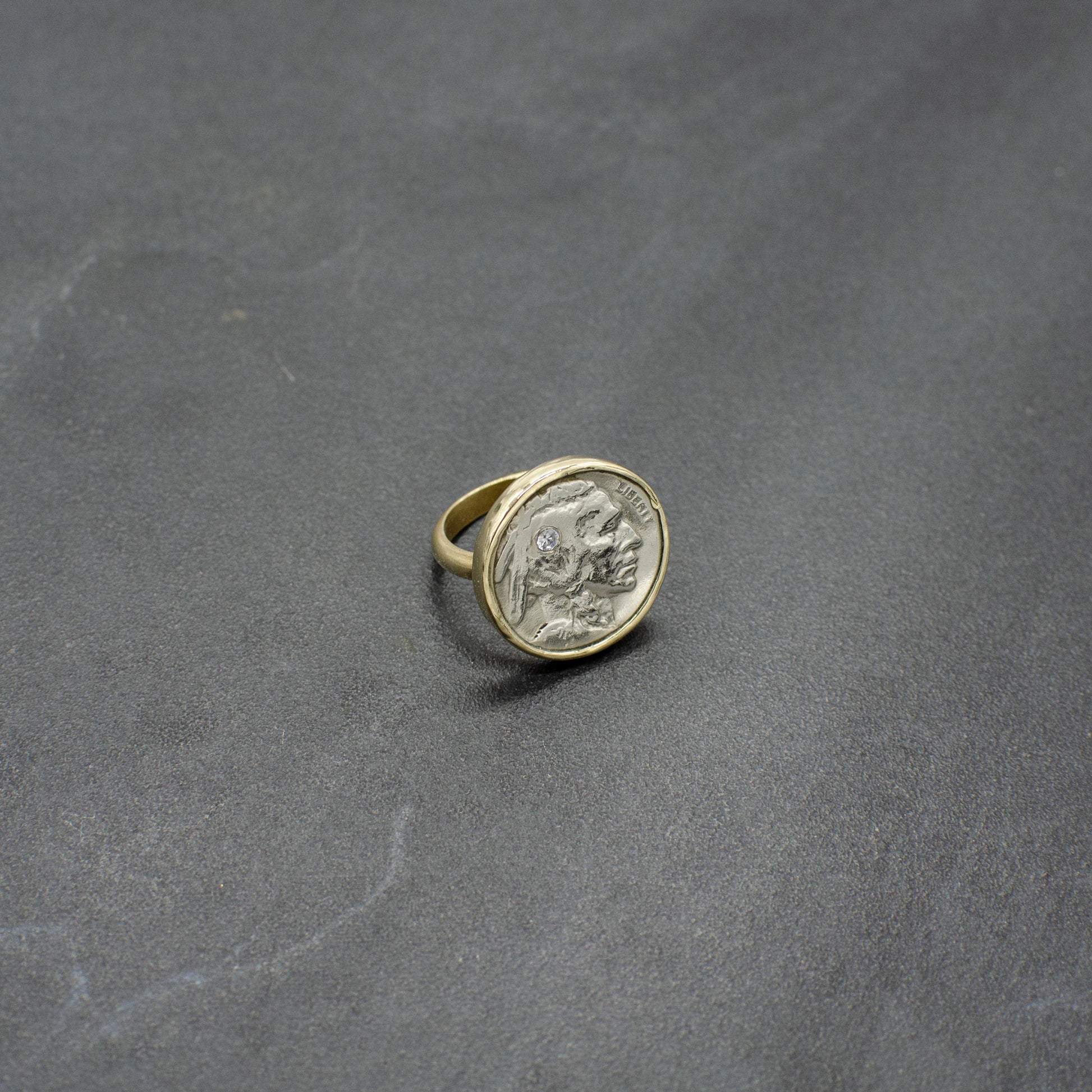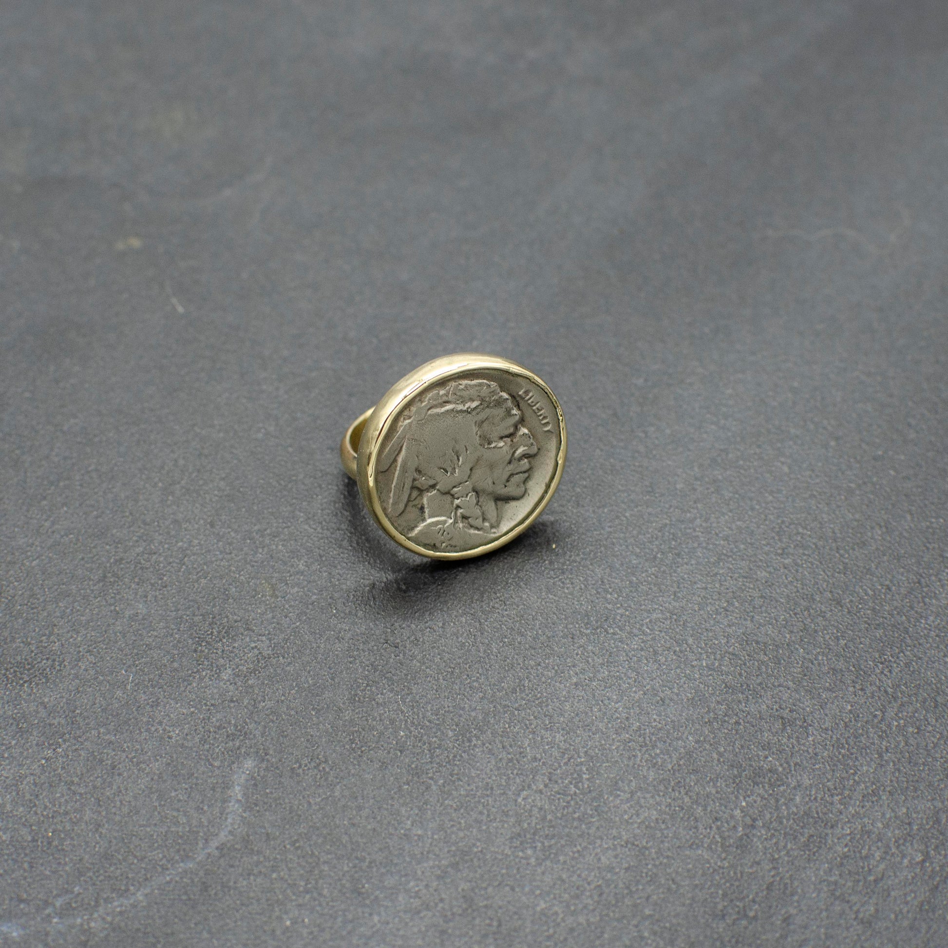 An Indian coin ring inlaid with a cz. Want a specific year? Contact us through our custom order page.